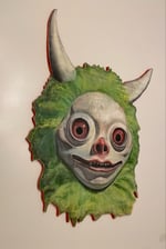 Ink, watercolor, acrylic paint and plaster on wood