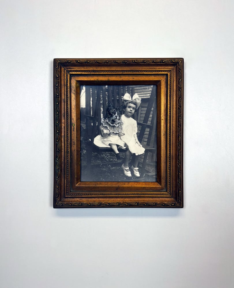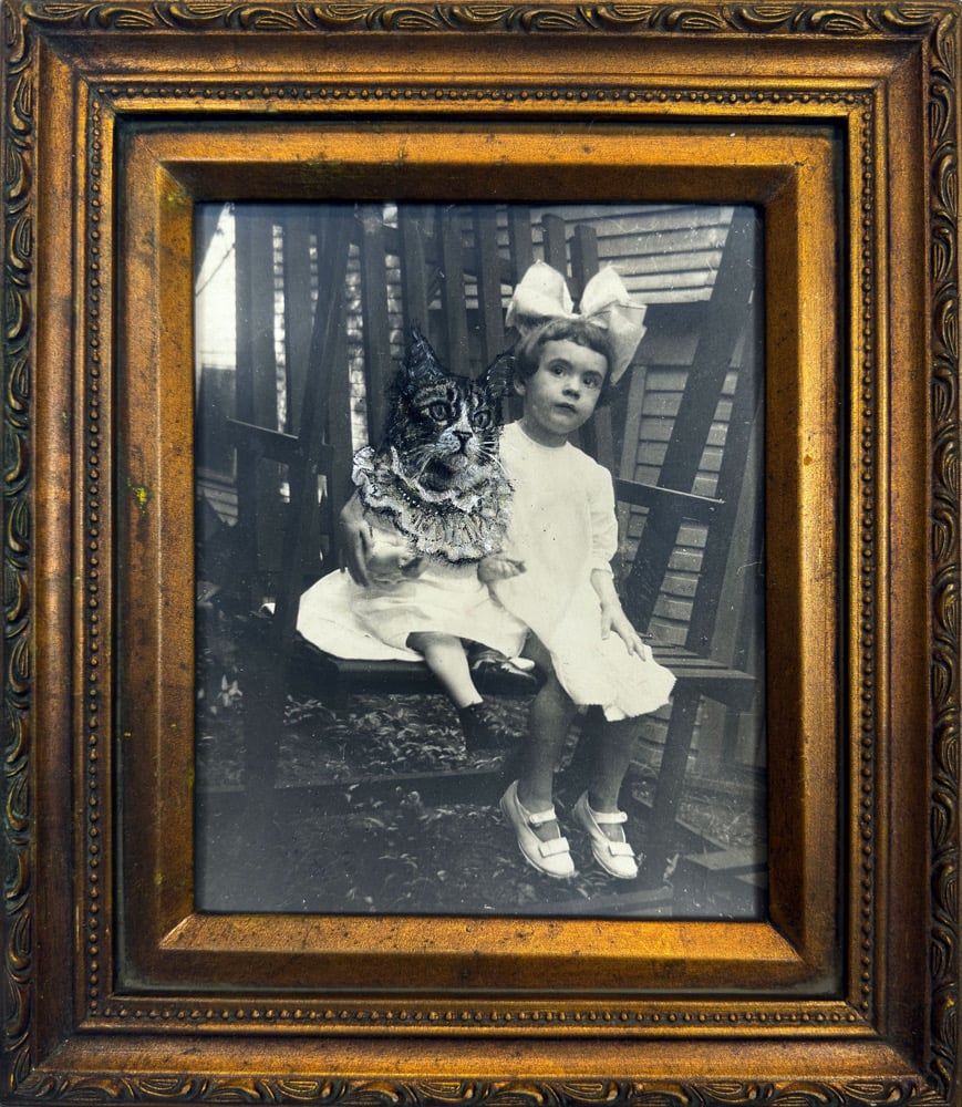 charcoal, ink, and acrylic on a vintage photograph
