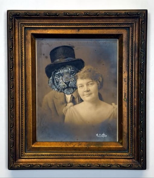 Medium: charcoal, ink, and acrylic on a vintage photograph